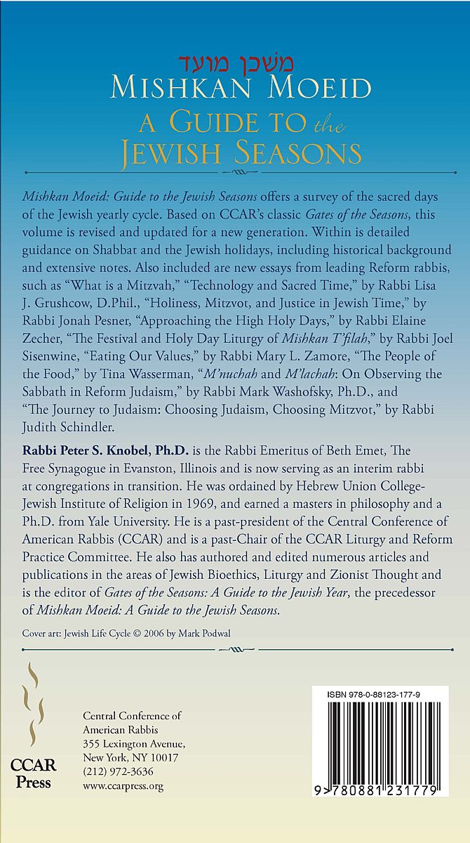 Newly revised and updated edition of the CCAR classic Gates of the Seasons, this new volume presents a survey of the sacred days of the Jewish yearly cycle. Providing detailed guidance on observing Shabbat and the Jewish holidays, including historical background, essays, and extensive notes, Mishkan Moeid is perfect for Introduction to Judaism classes and conversion candidates, as well as personal study for those wishing to reconnect or deepen their relationship to Judaism.
