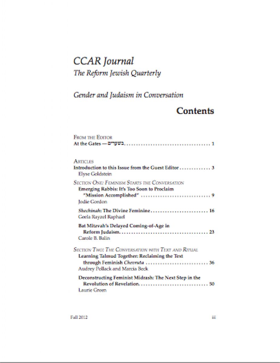 CCAR Journal - Fall 2012: Gender and Judaism in Conversation