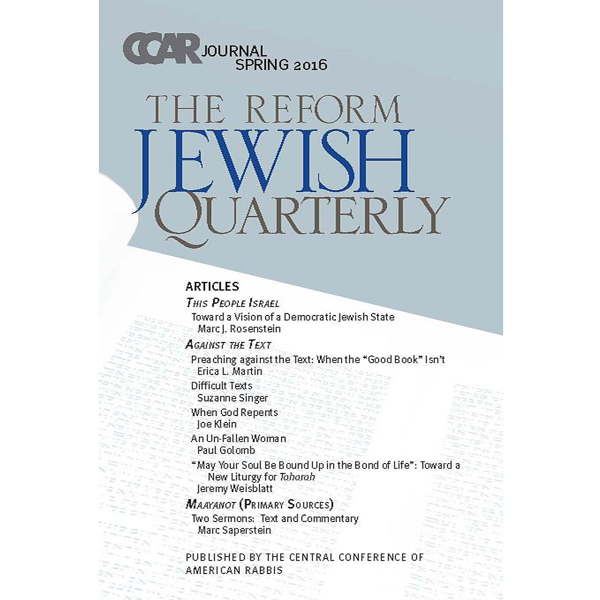 CCAR Journal - Spring 2016