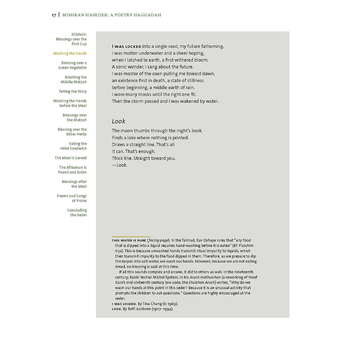 Mishkan HaSeder features poetry by Yehuda Amichai, Ellen Bass, Lucille Clifton, Edward Hirsch, Ross Gay, Emma Lazarus, Denise Levertov, Ada Limon, Grace Paley, Dan Pagis, Adrienne Rich, and many more. Equally suited to home and community celebrations, this is a Haggadah for today and tomorrow. Mishkan HaSeder has the depth to stimulate experienced seder leaders while its accessible explanations will make those joining our tables for the first time feel welcome.