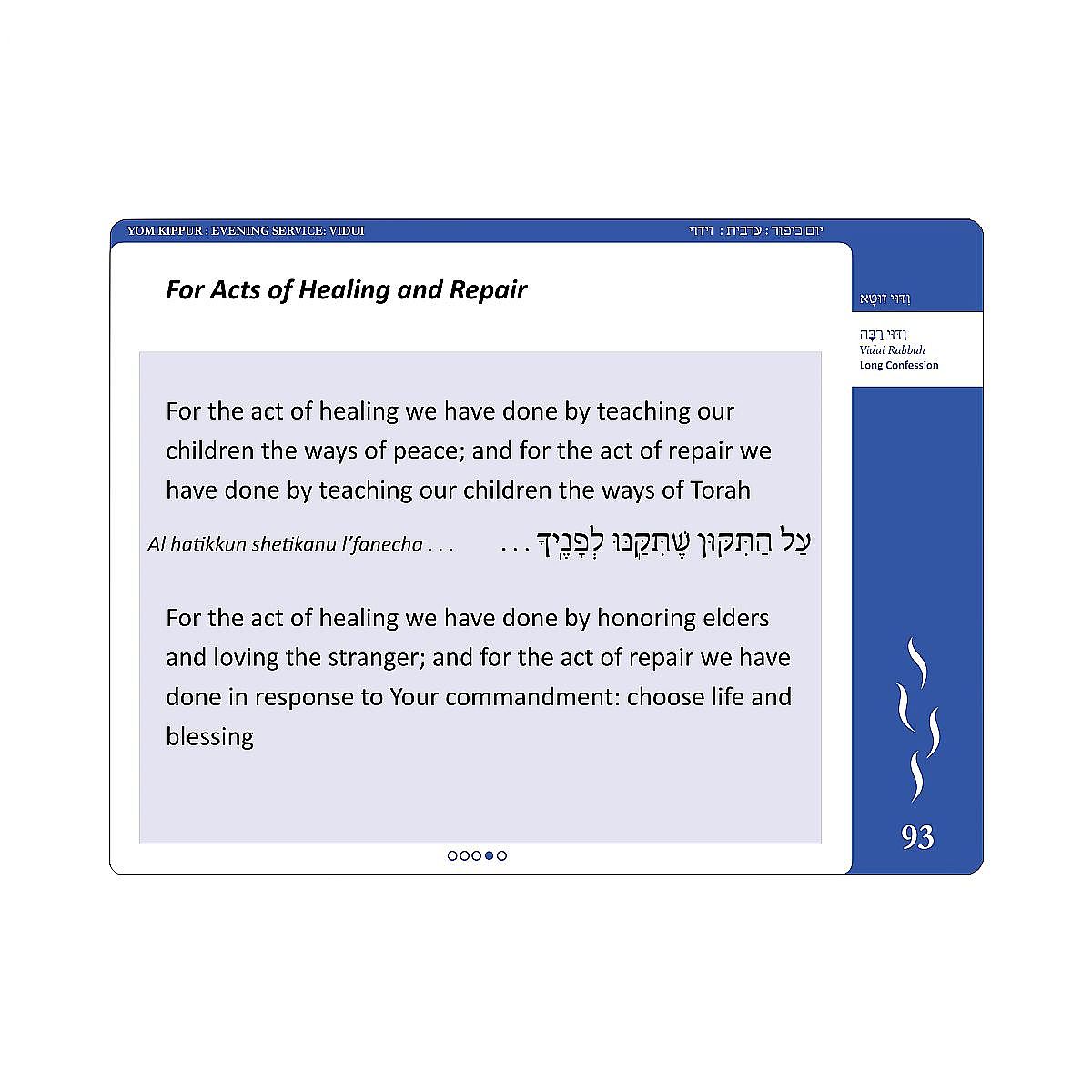 This is the Pro version. "Pro" services allow users to edit each element of a prayer slide (including text, images, and more) for an advanced opportunity to customize the Visual T'filahTM. Also available is a basic version. Download this sample to compare Pro and Basic.