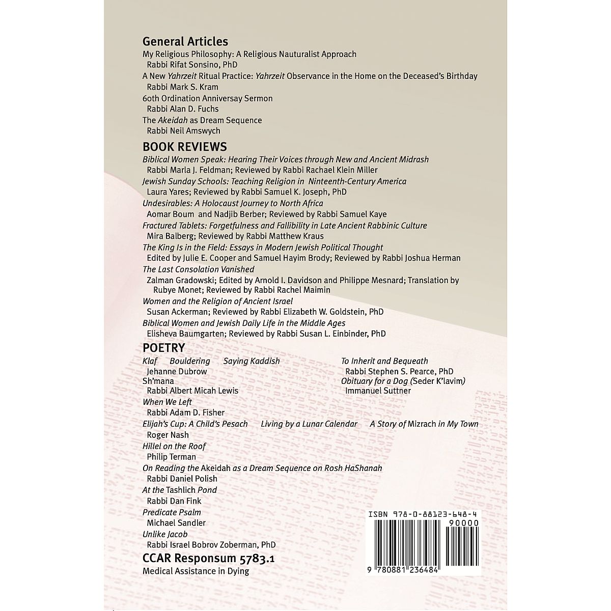 This issue of the CCAR Journal focuses on the relationship between Judaism and rapid technological change, the disconnect between information and meaning, and related existential questions facing the Reform Movement. General articles, book reviews, and poetry are also included.