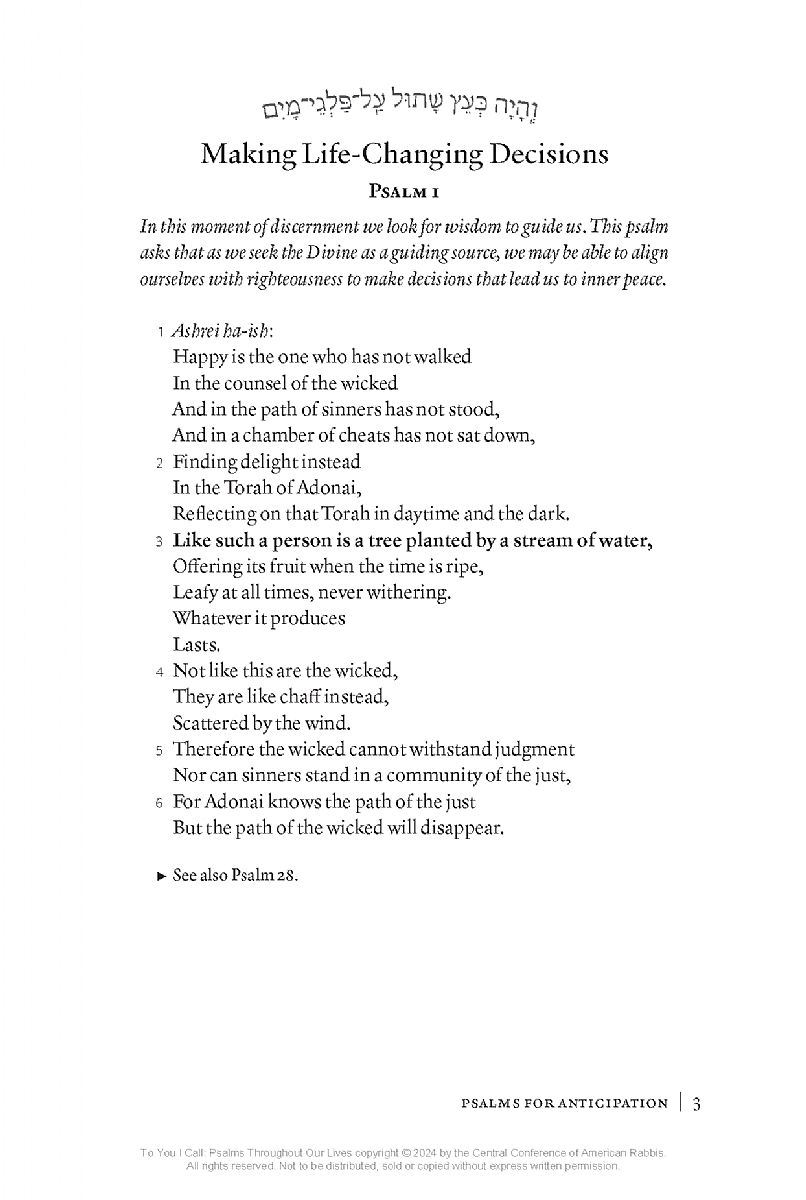 Rabbi Richard N. Levy's modern translation of the psalms makes the ancient words accessible to all readers, both those who are familiar with the text and those who are reading it for the first time. ... To You I Call can be read many times, and each time a reader will find new meanings, interpretations, and connections in the words of the psalms and Rabbi Sank Ross's commentary.