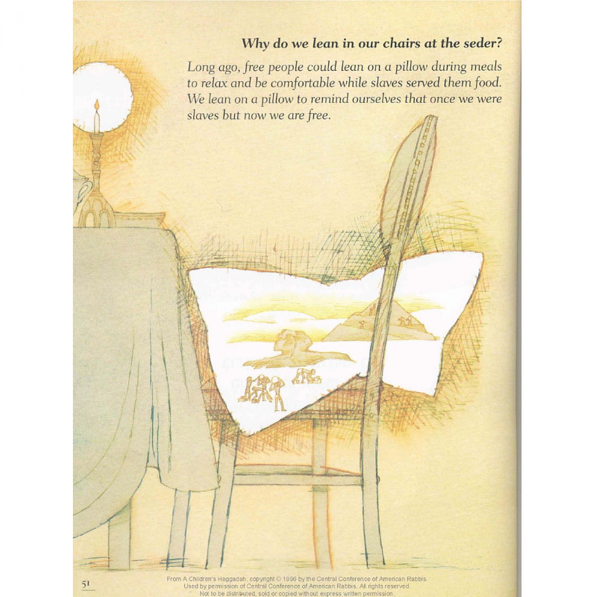This unique Haggadah, designed especially for young people, is a delightful asset for any seder table: home, religious schools, or community centers. Through special foods, prayers, and songs, children come to a personalized understanding of the miraculous event that is the Exodus. The beautiful, original illustrations render the text a meaningful work of art for all those who read it. This 8-1/2" x 11" volume includes art on every page and a vibrant accordion fold-out of the seder plate.