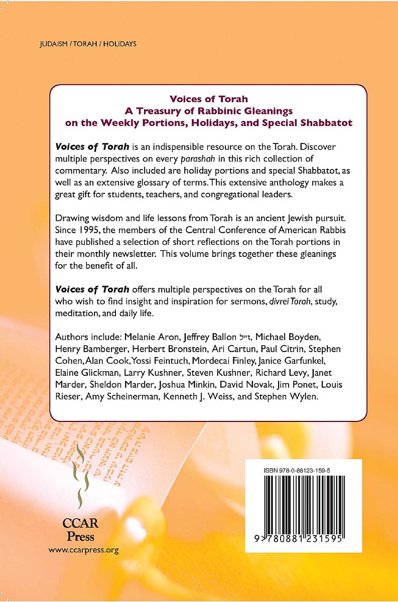 Torah continues to speak to us and it must continue to speak through us. May the 'voices of Torah' included in this volume touch your hearts, challenge your minds, and motivate you to probe our Torah tradition reaching ever more deeply into it. With this volume and its offerings, may you discover new understandings and identify new gleanings that you can transmit to those you teach and befriend. Thus, yours will be a new voice for our ageless Torah.