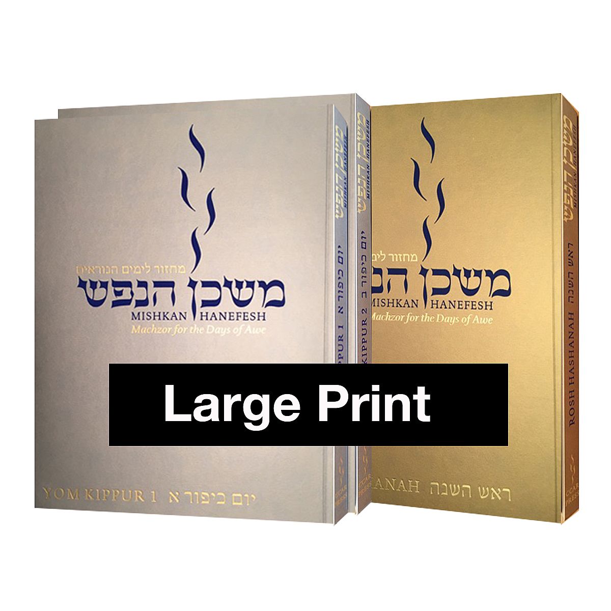 This oversized large print paperback edition is for those with visual impairment. Printed in three volumes to reduce the weight, this set includes one volume for Rosh HaShanah, and two volumes for Yom Kippur. The pagination matches that of the regular two volume set.