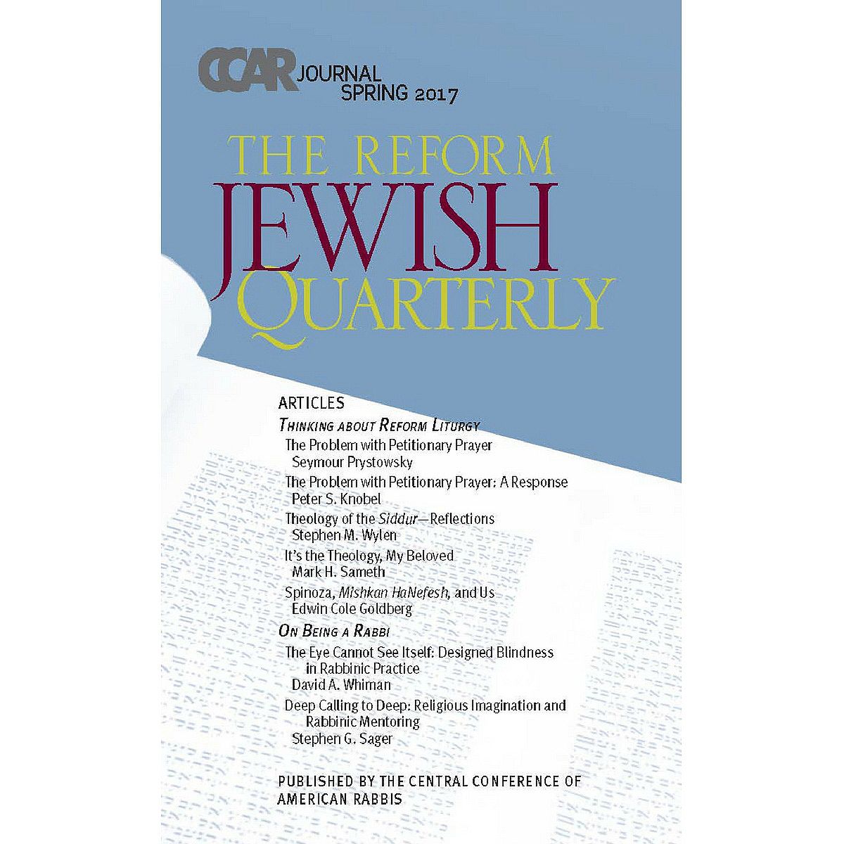 CCAR Journal - Spring 2017: Thinking about Reform Liturgy