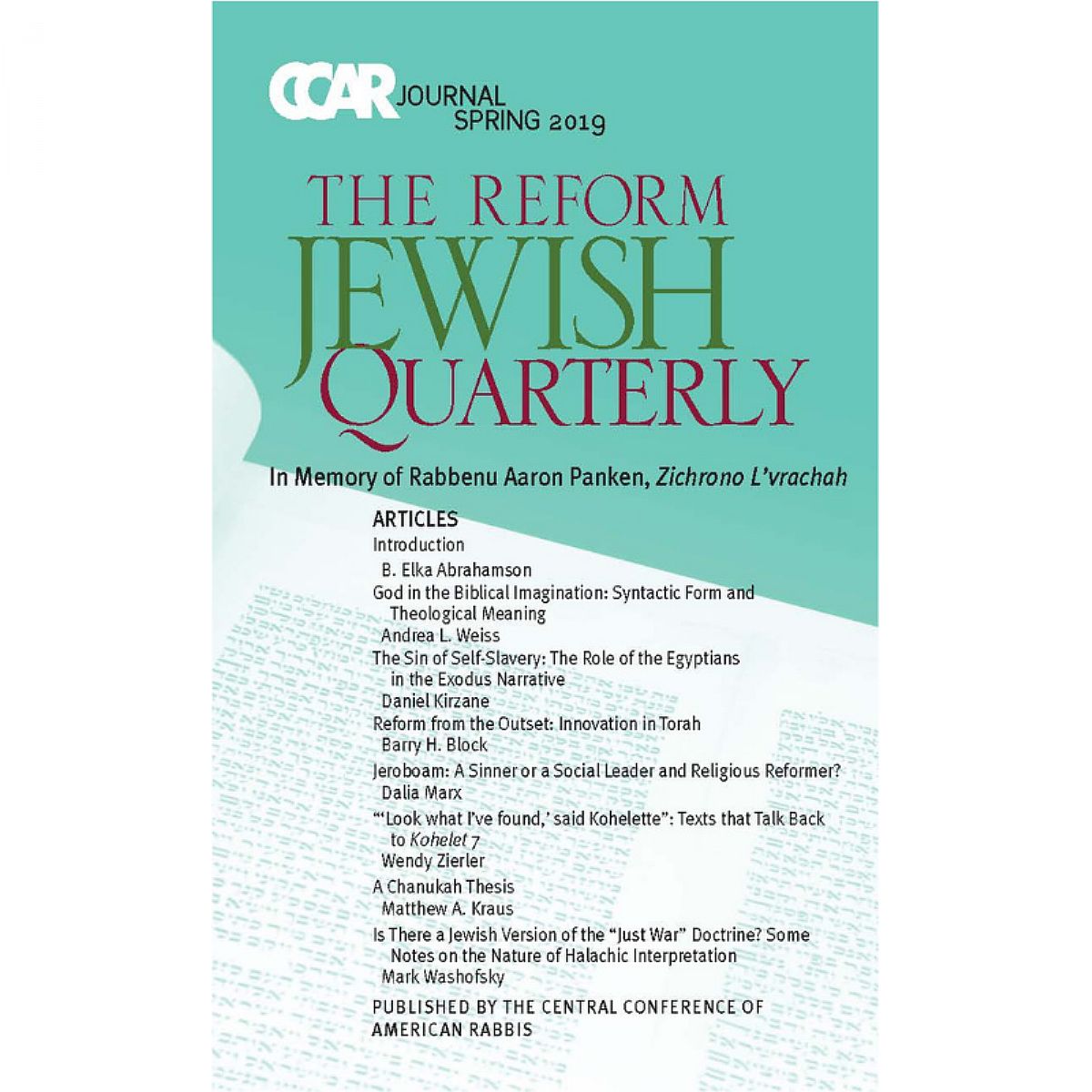 CCAR Journal - Spring 2019: In Memory of Rabbenu Aaron Panken, Zichrono L'vrachah