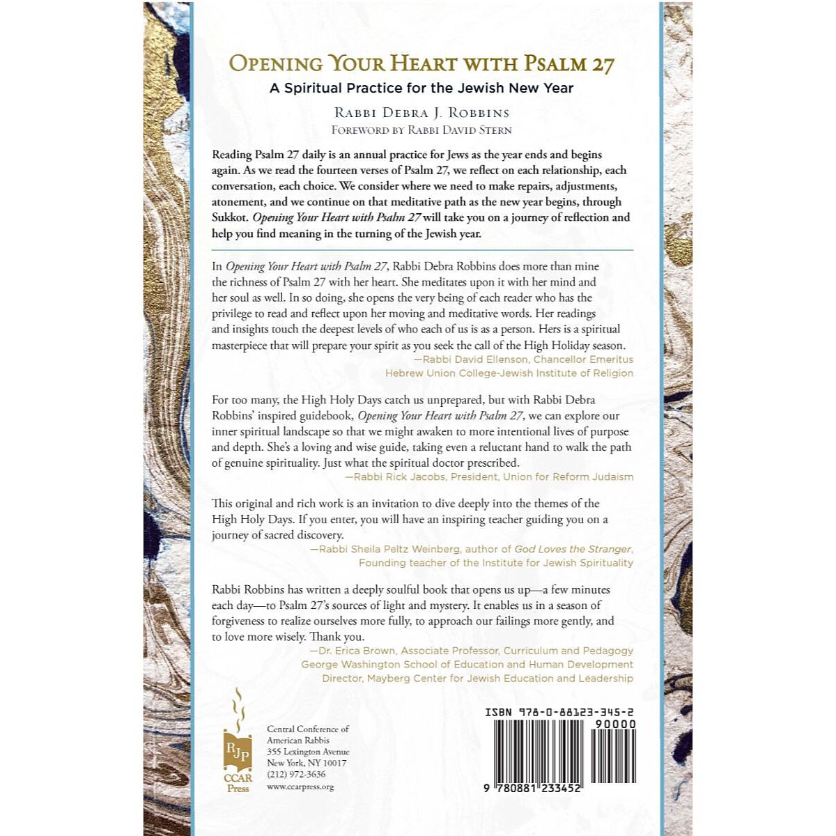 "In Opening Your Heart with Psalm 27, Rabbi Debra Robbins does more than mine the richness of Psalm 27 with her heart. She meditates upon it with her mind and her soul as well. In so doing, she opens the very being of each reader who has the privilege to read and reflect upon her moving and meditative words. Her readings and insights touch the deepest levels of who each of us is as a person. Hers is a spiritual masterpiece that will prepare your spirit as you seek the call of the High Holiday season."
