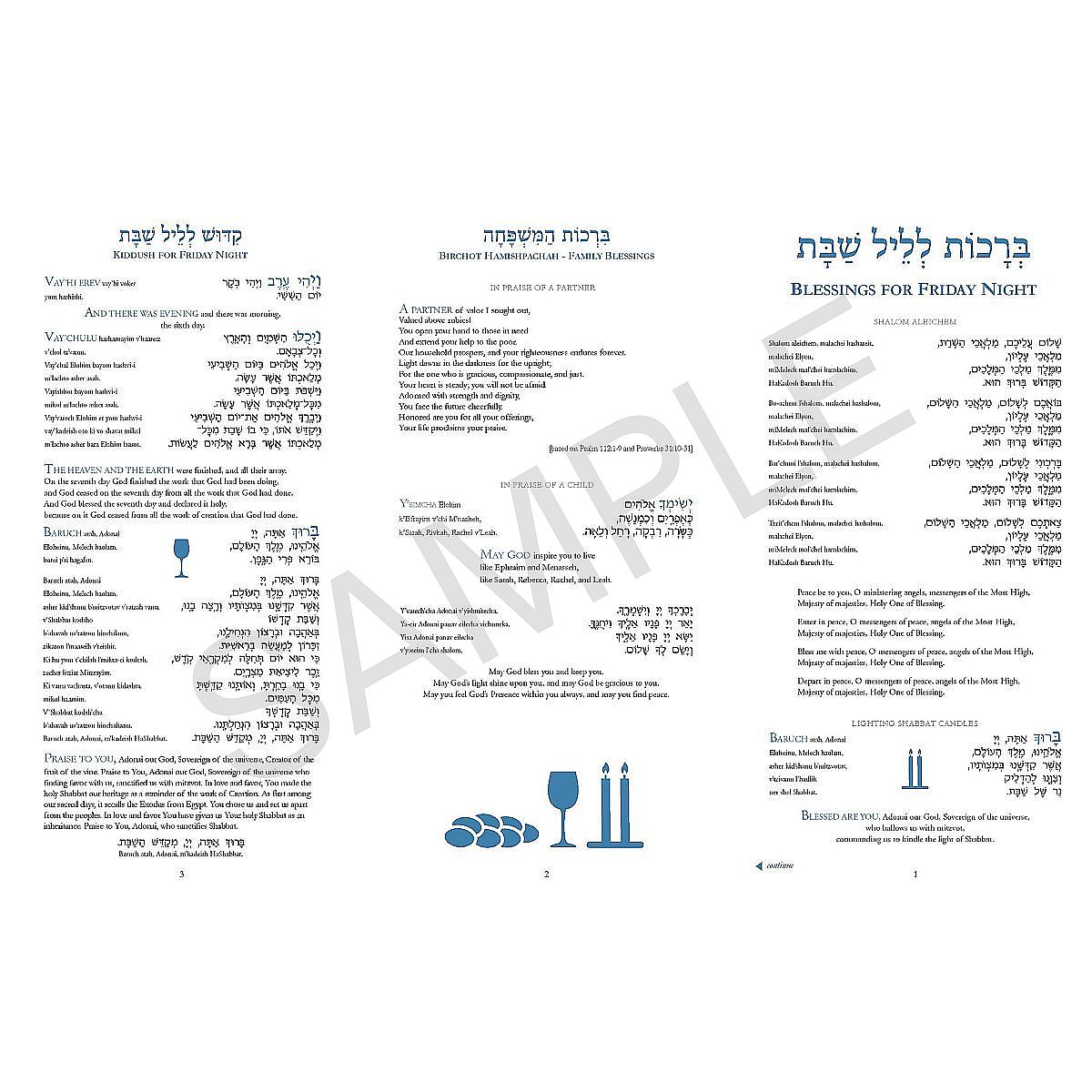 The laminated Shabbat Table Card is light and easy to navigate. It can be used at home, in synagogues, and while traveling as it fits in every bag, and survives every messy dinner.