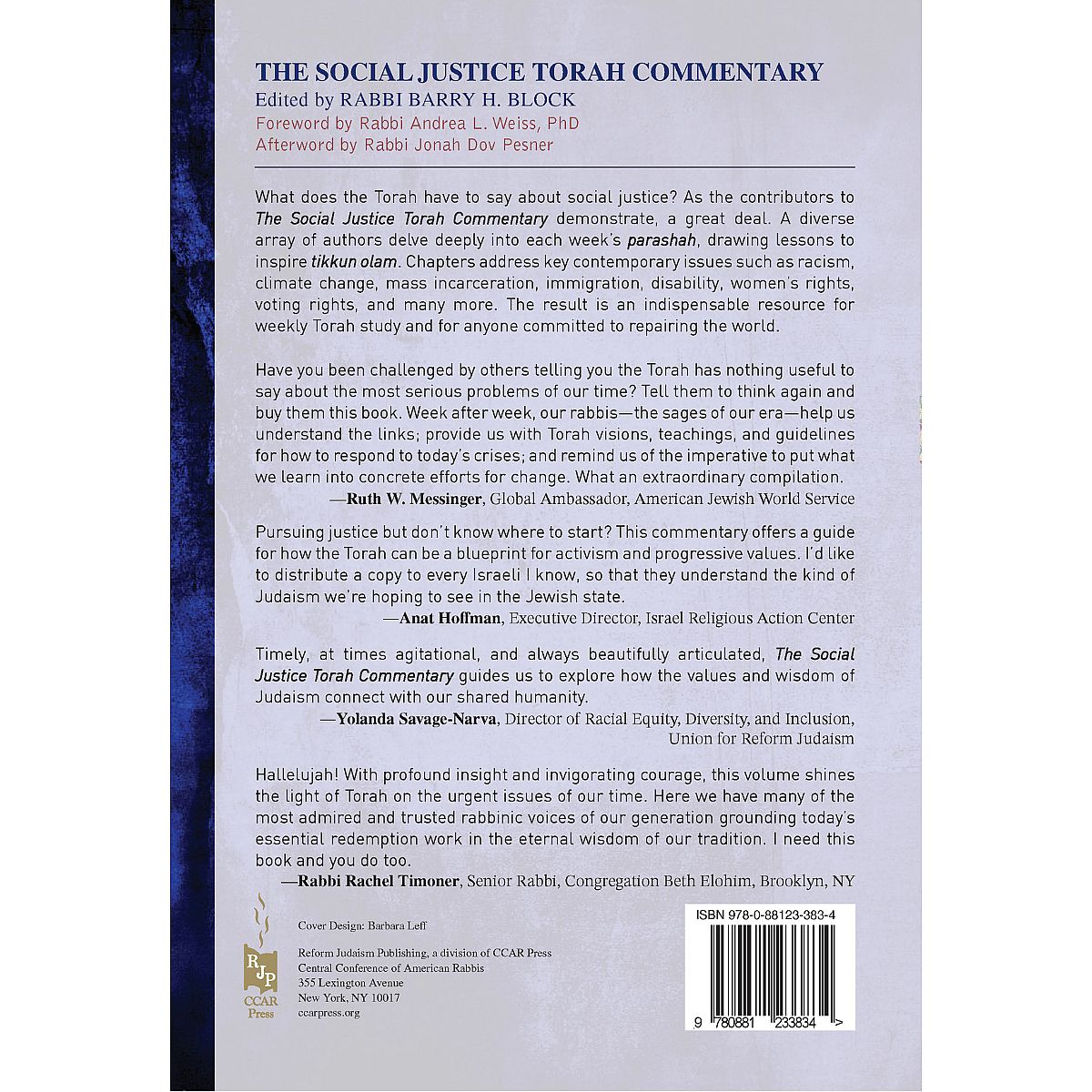 "Dozens of leading rabbis highlight the Torah's answers to today's pressing social justice issues. ... Collectively, this volume is a well-researched, welcome addition to Torah commentaries. Scholars will find detailed, sophisticated analyses, and general readers, assisted by the book's approachable writing style and helpful glossary, will find pragmatic ways to pursue social justice action in their own lives. ... it has the potential to be a volume that both rabbis and laity will turn to for decades to come. An authoritative Jewish commentary on contemporary issues." - Kirkus Reviews