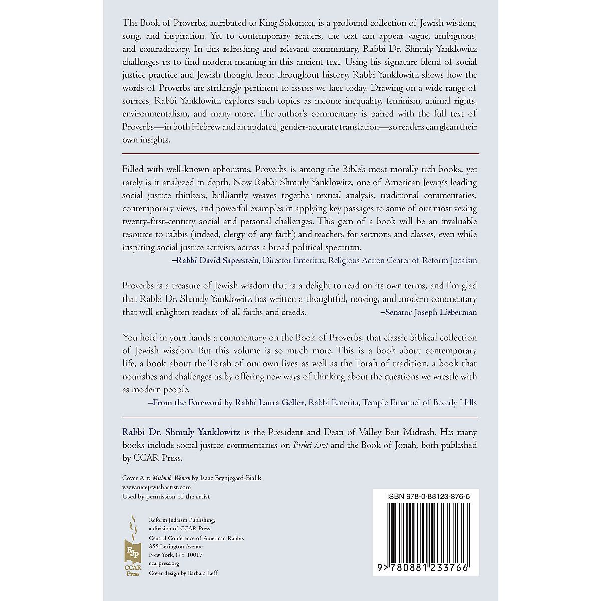 Proverbs is a treasure of Jewish wisdom that is a delight to read on its own terms, and I'm glad that Rabbi Dr. Shmuly Yanklowitz has written a thoughtful, moving, and modern commentary that will enlighten readers of all faiths and creeds. -- Senator Joseph Lieberman