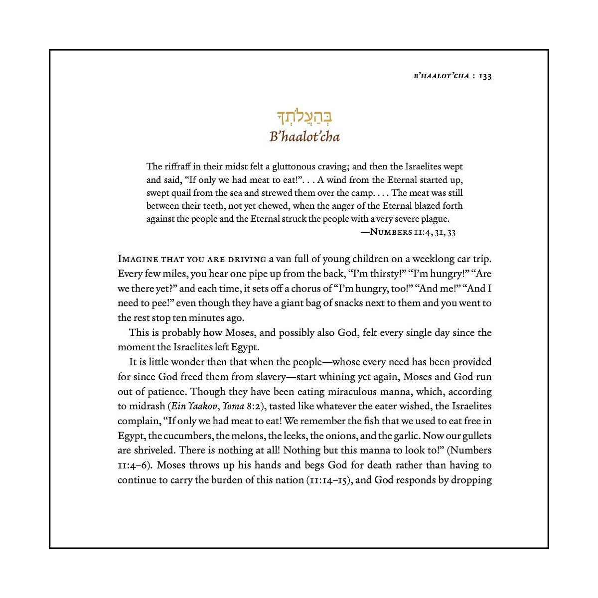 Those who are looking for ways to expand their creative repertoire and learn about the weekly Torah reading will have hours of enjoyment in making Harper's challahs and creating their own. For those who don't bake, the text is perfect for personal review or sharing at the Shabbat table.