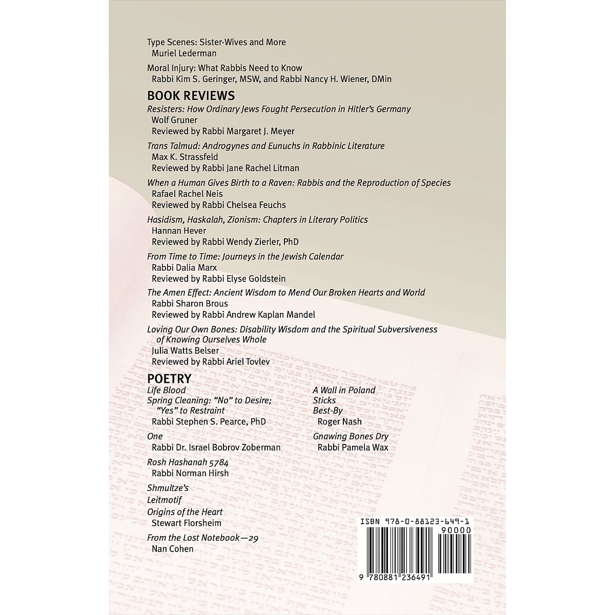 This double issue of CCAR Journal includes a new data analysis by the Reform Pay Equity Initiative, a discussion of the growth of Reform Judaism in IberoAmerica, a piece on disenfranchised grief in the wake of October 7, and several articles addressing the challenges of pastoral care. The issue also contains new book reviews and poems.