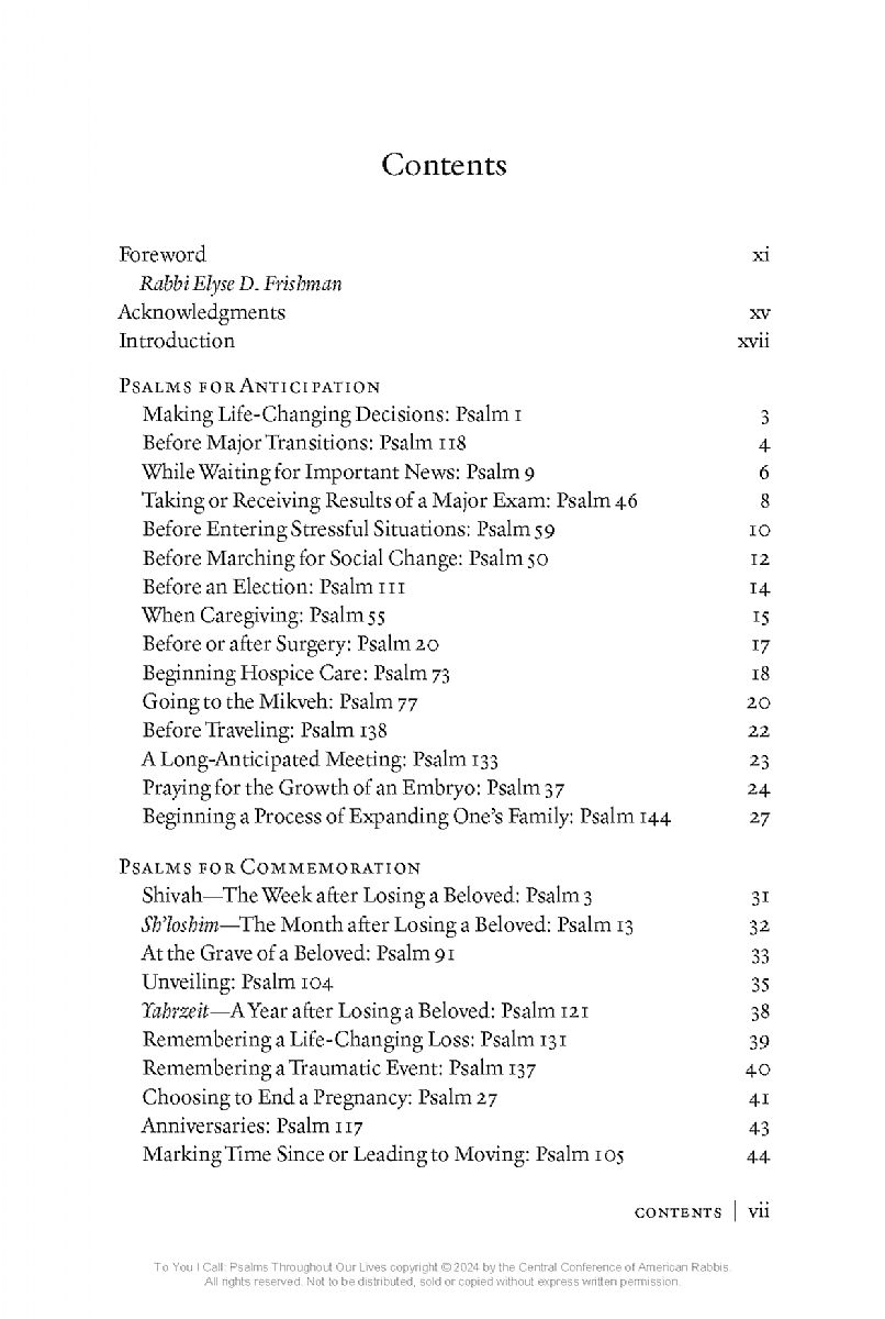 Psalms have been part of Jewish ritual and liturgy for centuries, expressing praise to God, feelings of sorrow and longing, and much more. Rabbi Jade Sank Ross's To You I Call is an invitation to make the ancient words of psalms part of our daily lives. The book pairs seventy-two psalms with a range of life moments, from giving birth to retirement to experiencing antisemitism---times of grief and gratitude, anticipation and despair, pain and relief. Rabbi Sank Ross's original, authentic framing and Rabbi Richard N. Levy's beautiful, contemporary translations let readers forge a deep and personal connection with the words of the Psalmist. With sensitivity and vulnerability, To You I Call brings the psalms to life for our lives, today.