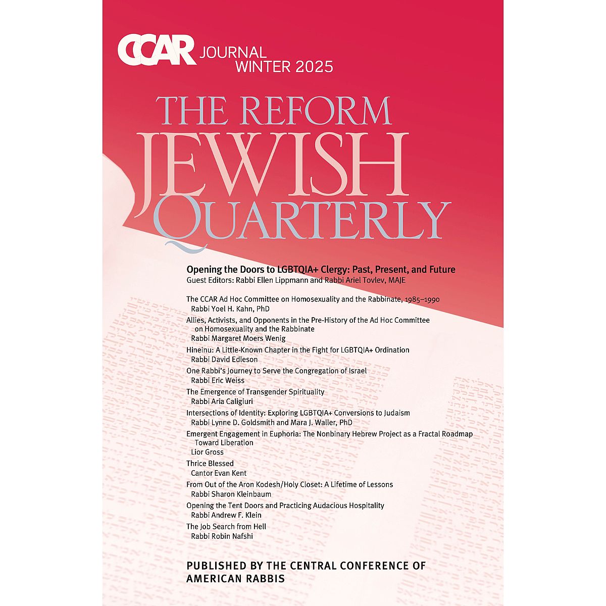 This issue of the CCAR Journal focuses on the journey of LGBTQIA+ clergy, from early struggles to present-day progress and visions for the future. The articles and reflections examine the milestones, challenges, and triumphs of LGBTQIA+ clergy, offering insight into the evolving landscape of Jewish leadership and inclusion. The issue also contains new book reviews and poetry.