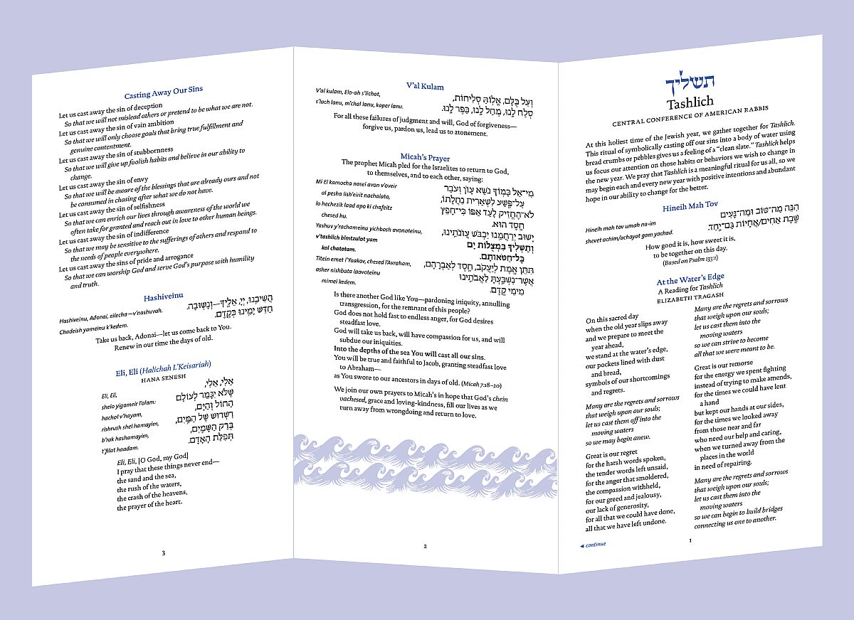 This Tashlich Card is the resource we all have been waiting for! The carefully chosen readings and songs will be meaningful to people of all ages. These cards are portable and durable; we can use them at all of the beautiful locations where we experience Tashlich.